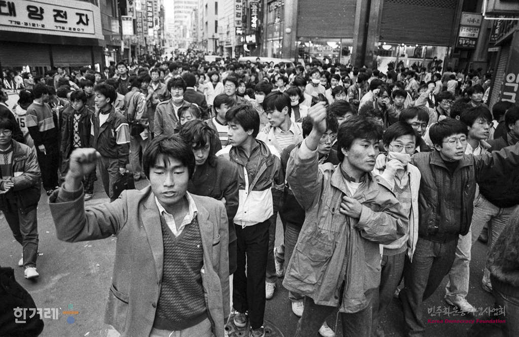 - 1988년 11월 9일 오후 5시 전대협 산하 서울지역 총학생회연합 소속 대학생들이 명동성당 등지에서 전 이씨 구속과 광주5적 처벌을 위한 1백만학도총궐기대회를 열며 가두시위를 벌이고 있다.