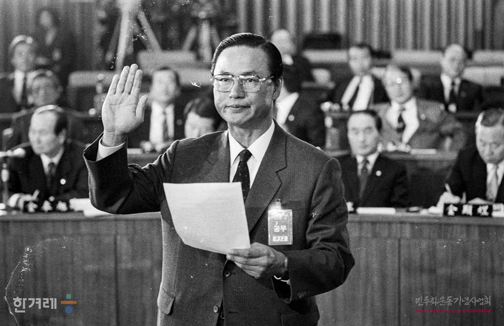 - 1988년 11월 9일 일해재단 2차청문회 마지막날이면서 사흘째인 국회 5공특위 일해재단청문회에서 회의를 속개하며 증인으로 출석한 안현태 전 청와대 비서실장이 증인선서를 하고 있다.