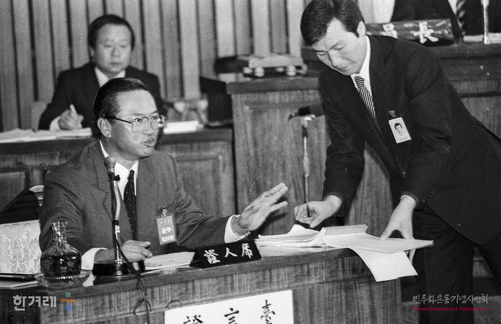 - 1988년 11월 9일 일해재단 2차청문회 마지막날이면서 사흘째인 국회 5공특위 일해재단청문회에서 회의를 속개하며 증인으로 출석한 안현태 전 청와대 비서실장이 의원들이 심문에 증언을 하고 있다.