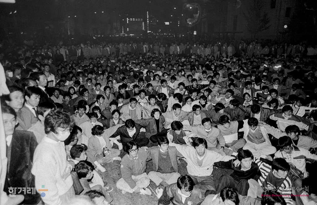 - 1988년 11월 10일 전두환부부 구속처벌 및 비호자 노태우 퇴진을 위한 서울시민 2차 총궐기대회가 열리기로 한 서울시청앞 광장이 경찰의 원천봉쇄로 저지되자 학생과 시민들이 시내 중심가에서 경찰과 대치하며 산발적인 시위를 벌이고 있다.