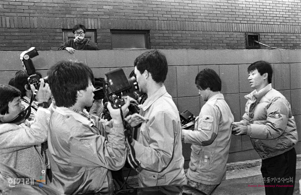 - 1988년 11월 12일 오전 국회 광주특위 의원들이 전두환씨의 청문회 출석을 요구하러 서울 연희동 집을 방문하는 모습을 취재하려하자 주변 경호를 하던 경찰들이 기자들의 취재를 막고 있다.