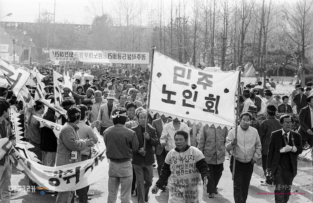 - 1988년 11월 13일 전국의 노동자 시민 학생 등 3만5천여명이 모인 서울 연세대 노천극장에서 ‘전태일 열사 정신 계승 노동악법개정 전국노동자대회’를 마치고 참석자 여의도 국회의사당 앞까지 평화행진을 하고 있다.