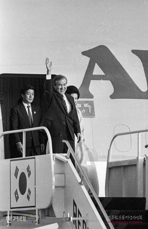 - 1988년 11월 14일 오후 말레이시아 오스트렐리아 인도네시아 브루나이 등 아시아 태평양지역 4개국 순방을 마친 노태우대통령 부부가 특별전세기 편으로 귀국에 비행기에서 내리고 있다.