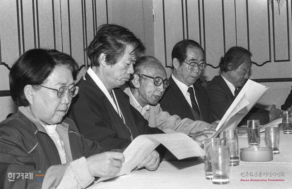 - 1988년 11월 17일 문익환, 계훈제, 박형규씨는 재야 종교 학계 원로32명은 서울 쎄실레스토랑에서 전두환 이순자 구속처벌 제2차 범국민 궐기대회를 앞두고 전씨부부의 구속처벌을 요구하며 기자회견을 하고 있다. 이날 성명에서 5공비리 척결 범국민 특별위원회 설치와 전씨 부부의 즉가구속처벌을 촉구했다.