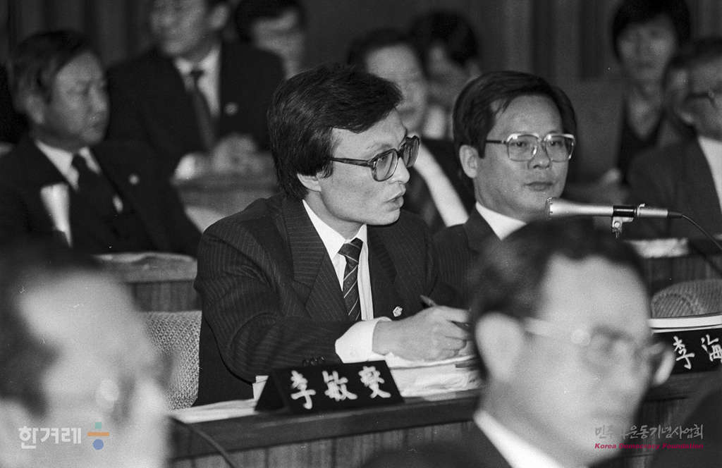 - 1988년 11월 18일 국회 광주특위는 김대중 평민당총재와 이희성 전 계엄사령관을 증인으로 출석기킨 가운데 광주항쟁의 진상규명을 위한 1차 청문회를 하고 있다.