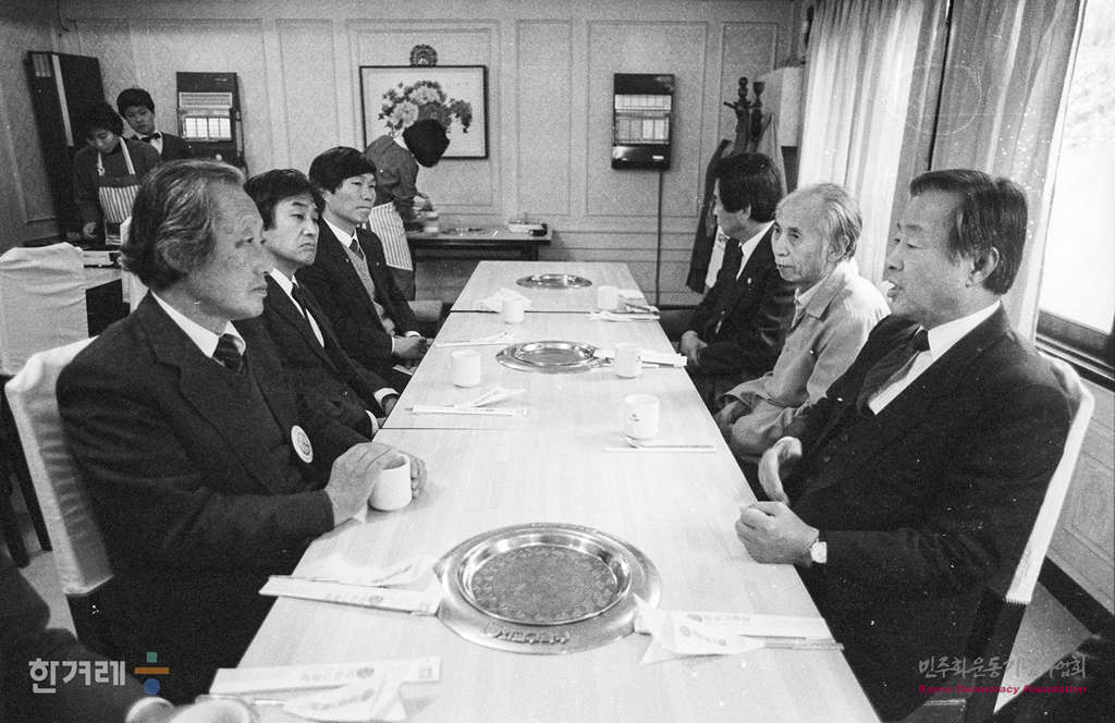 - 1988년 11월 18일 전두환 이순자 구속처단 투쟁본부의 문익환 계훈제 이재오 김도연씨는 여의도 한 음식점에서 김영삼 민주당 총재를 만나 전두환씨 처리방안을 협의하고 있다.