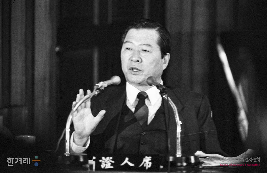 - 1988년 11월 18일 5.17 당시 계엄사에 의해 구속됐던 김대중 평민당총재가 국회 광주특위 청문회 증인으로 출석해 증언을 하고 있다