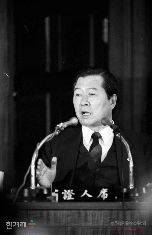 - 1988년 11월 18일 5.17 당시 계엄사에 의해 구속됐던 김대중 평민당총재가 국회 광주특위 청문회 증인으로 출석해 증언을 하고 있다
