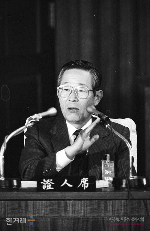 - 1988년 11월 18일 광주항쟁의 진상규명을 위한 1차 청문회가 열린 국회 광주특위에서 열였다. 이날 청문회서 광주항쟁 발발 배경과 동기, 김대중 내란 음모사건의 조작여부에 대한 증언을 듣었다. 당시 계엄사령관인 이회성씨가 증언을 하고 있다.