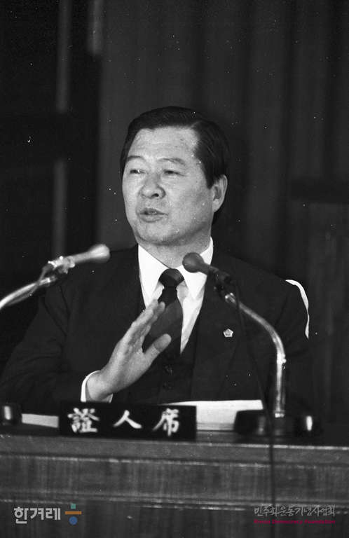 - 1988년 11월 18일 광주항쟁의 진상규명을 위한 1차 청문회가 열린 국회 광주특위에서 열였다. 이날 청문회서 광주항쟁 발발 배경과 동기, 김대중 내란 음모사건의 조작여부에 대한 증언을 듣었다. 당시 계엄사에 의해 구속됐던 김대중 평민당 총재가 증언을 하고 있다.
