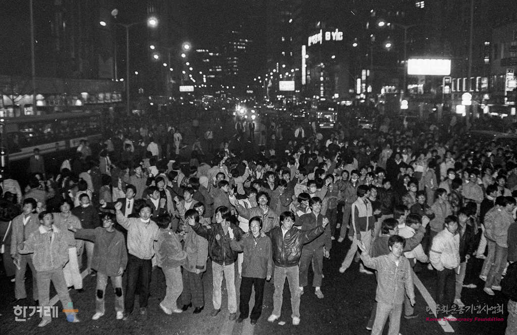 - 1988년 11월 19일 전두환 이순자씨의 구속처벌을 요구하는 국민궐기대회가 서울 대학로를 비롯한 전국 18개 도시에서 시민 학생 노동자 등 모두 3만여 명이 참가한 가운데 열려 시민과 경찰의 충돌을 빚었다. 서울 대학로에서 대회를 마친 참석자들은 행진에 나서 명동입구에서 거리시위를 벌이고 있다. .