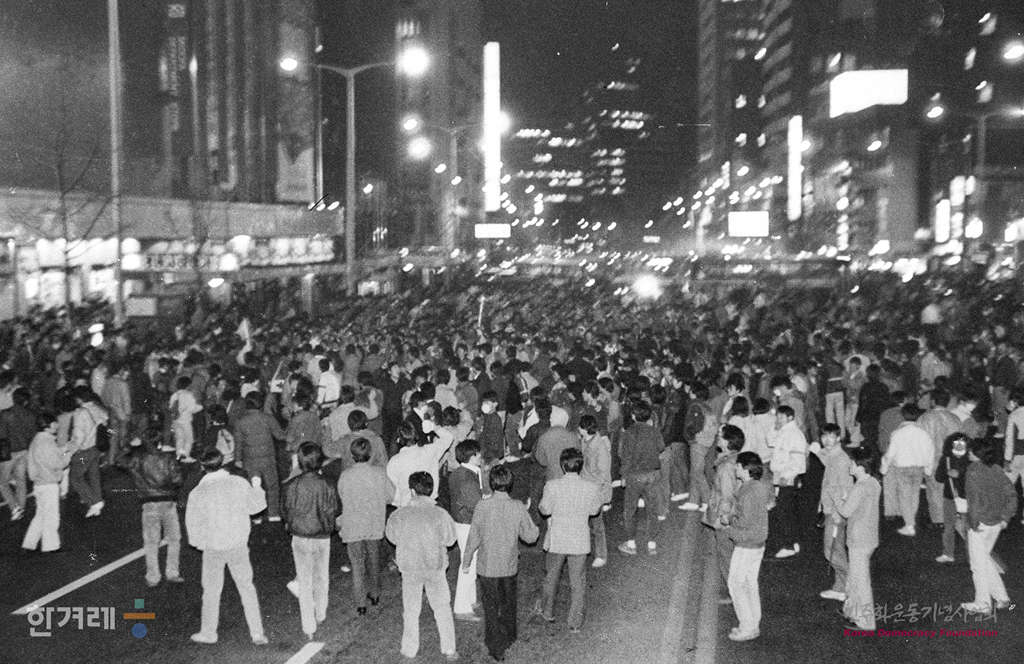 - 1988년 11월 19일 전두환 이순자씨의 구속처벌을 요구하는 국민궐기대회가 서울 대학로를 비롯한 전국 18개 도시에서 시민 학생 노동자 등 모두 3만여 명이 참가한 가운데 열려 시민과 경찰의 충돌을 빚었다. 서울 대학로에서 대회를 마친 참석자들은 행진에 나서 명동입구에서 거리시위를 벌이고 있다. .