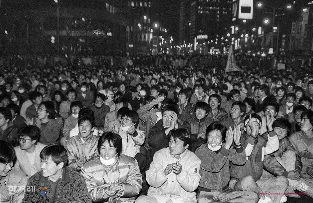 - 1988년 11월 19일 전두환 이순자씨의 구속처벌을 요구하는 국민궐기대회가 서울 대학로를 비롯한 전국 18개 도시에서 시민 학생 노동자 등 모두 3만여 명이 참가한 가운데 열려 시민과 경찰의 충돌을 빚었다. 서울 대학로에서 대회를 마친 참석자들은 행진에 나서 명동입구에서 거리시위를 벌이고 있다. .