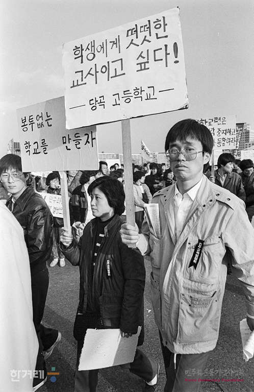 - 1988년 11월 20일 오후 2시 전국에서 모인 초 중 고 교사 및 대학생 교수 등 1만 2천여명이 서울 여의도광장 모여 참교육실천을 위한 민주교육법 쟁취 전국교사 대회를 열고 비민주적인 교육악법의 철폐와 교육관계법 개정 등을 요구하고 있다.