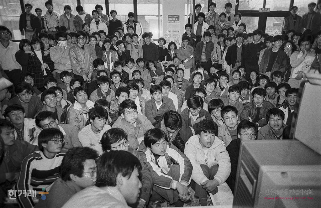 - 1988년 11월 22일 지난 8월 8.15남북청년학생회담 추진 당시 북한 대학생들의 조국종단 대행진 모습을 담은 비디오테이프가 연세대 학생회관 로비에서 상영되자 학생들이 관심있게 지켜보고 있다. 서울지역총학생회연합은 북한 조국종단대행진 모습 담은 비디오테이프를 전국대학에 보급해 북한 바로알기운동의 하나로 삼겠다고 밝혔다.