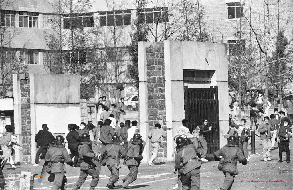 - 1988년11월 23일 전두환씨가 연희동 사과담화를 발표뒤 백담사로 집을 떠난 것으로 알려지자 서총련 체포결사대 소속 연세대생 1벽여명은 전씨 부부가 탄 차량을 습격하려다 경찰의 저지를 받자 돌과 화염병을 던지며 격력한 시위를 벌이고 있다.