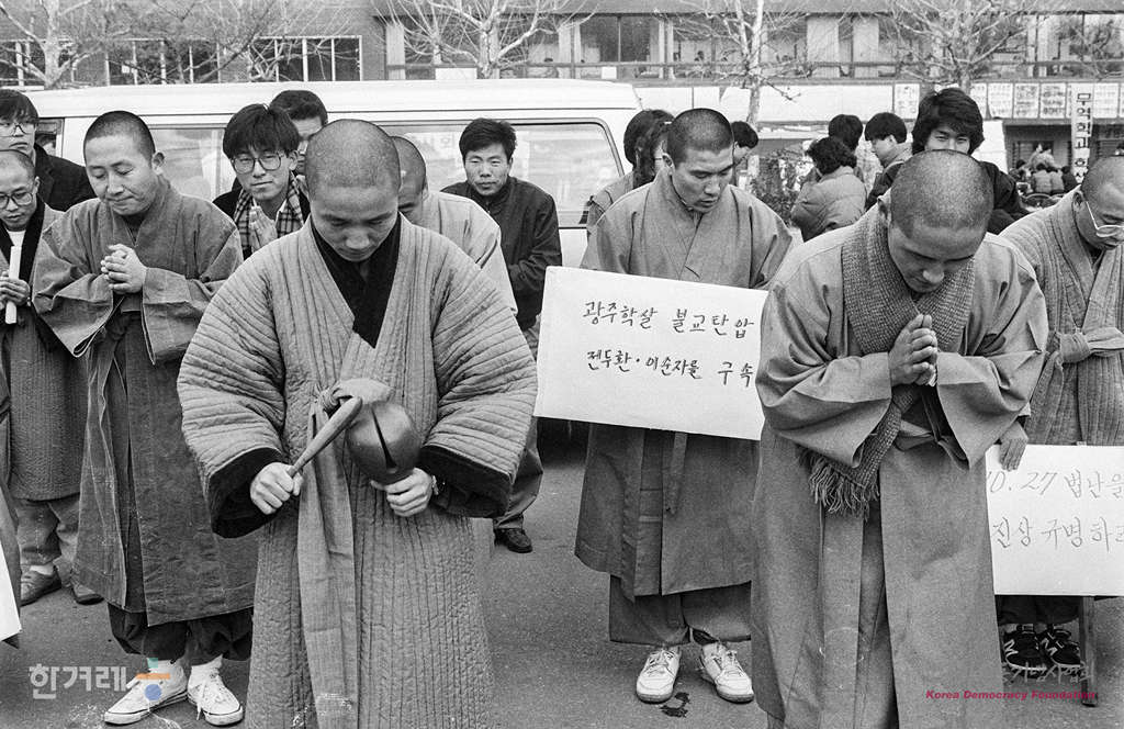 - 1988년 11월 24일 12시 동국대 불교대학에 재학하고 있는 현조(선학과)스님 등 학승 12명이 전두환시 부부가 백담사에서 떠나도록 요구하러 가기 전 학교에서 뜻을 다지는 모음을 갖고 있다. 이들은 교내 본관에서 봉고차를 백담사로 출발했지만 홍천 연봉 검문소에서 경찰에 저지당하자 농성을 벌이다 서울로 돌아왔다.