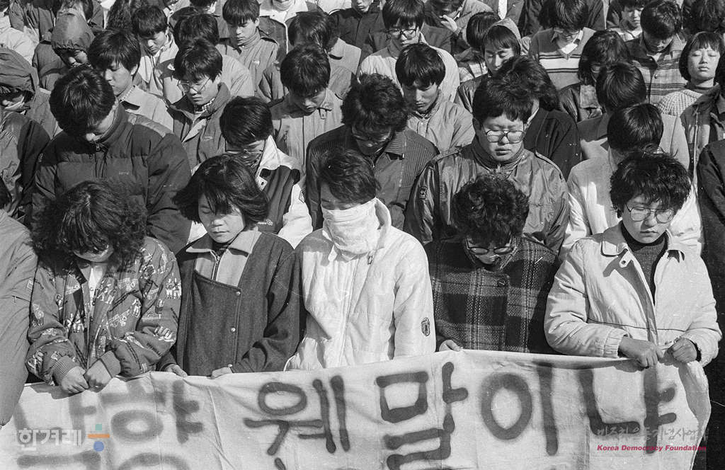 - 1988년 11월 25일 전두환씨의 사과 해명에도 불구하고 전씨 부부의 구속처벌을 요구하는 성명과 시위가 잇따르는 가운데 서울 연세대에서 학생 노동자 시민들이 전이부부 즉각구속과 노태우 정권규탄 제3차 국민궐기대회 출정식을 하고 있다.
