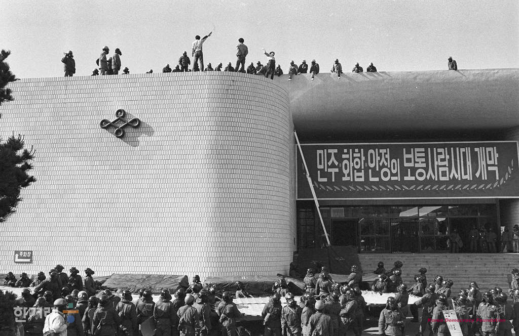 - 1988년 11월 26일 오전 7시 15분 서울지역 총학생회연합과 수원지역대학생협의회 산하 애국결사대 소속 16개대 대학생 42명이 전두환 구속과 미제축출 등의 구호를 외치며 서울 송파구 가락동 민정당연수원 본관 옥상을 점거한 채 농성을 벌이고 있다. 이들은 4시간 30분 동안 농성을 벌이다 모두 경찰에 연행됐다.