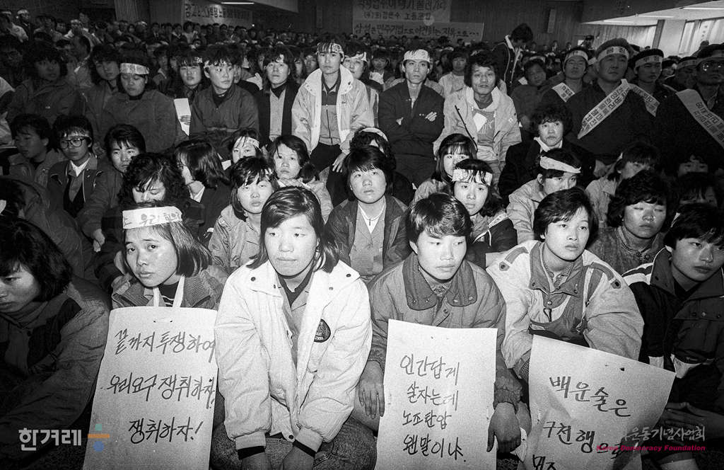 - 1988년 11월 29일 오후2시 한국노총은 서울 영등포구 여의도동 노총회당 8층강당에서 전국단위노조대표자 10백여명이 참석한 가운데 부당노동행위 규탄대회를 열고 삼성그룹의 노조결성 탄압행위를 규탄하고 삼성의 전제품 불매운동을 전개하겠다고 선언하고 있다.