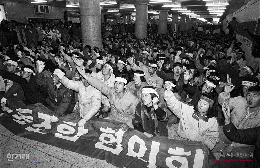 - 1988년 11월 30일 오후6시30분 서울지역노동조합협의회, 전국병원노조협의회, 연구전문기술노조협의회 등 서울 업종 노조협의회 소속 노동자 1천 2백여명이 서울 지하철 1호선 시청옆 대합실에서 노조탄압 분쇄 및 노동악법 개정촉구를 위한 청와대 규탄대회를 갖고 노동3권보장과 노동악법 폐지 등을 요구하며 시위를 벌이고 있다.