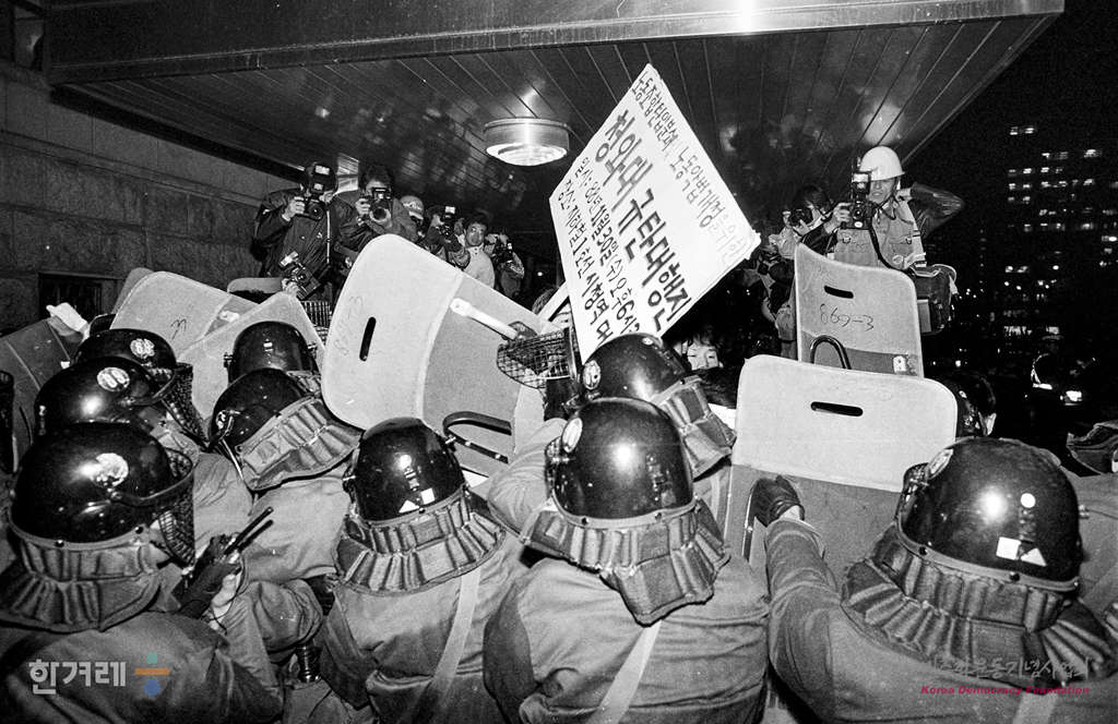 - 1988년 11월 30일 오후6시30분 서울지역노동조합협의회, 전국병원노조협의회, 연구전문기술노조협의회 등 서울 업종 노조협의회 소속 노동자 1천 2백여명이 서울 지하철 1호선 시청옆 대합실에서 노조탄압 분쇄 및 노동악법 개정촉구를 위한 청와대 규탄대회를 갖고 노동3권보장과 노동악법 폐지 등을 요구하며 시위를 벌이고 있다.