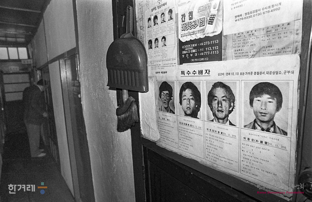 - 1988년 12월 1일 11월26일 노태우 대통령의 특별담화에 따른 후속조치의 하나로 양심수 석방이 임박한 가운데 시국관련 수배자들에게 수배해제조치도 동시에 이루어져야 한다는 여론이 높아지고 있다. 사진은 전국 각지의 숙박업소, 음식점, 버스터미널, 역 대합실 등에는 시국관련 수배자 전단이 붙어 있다.
