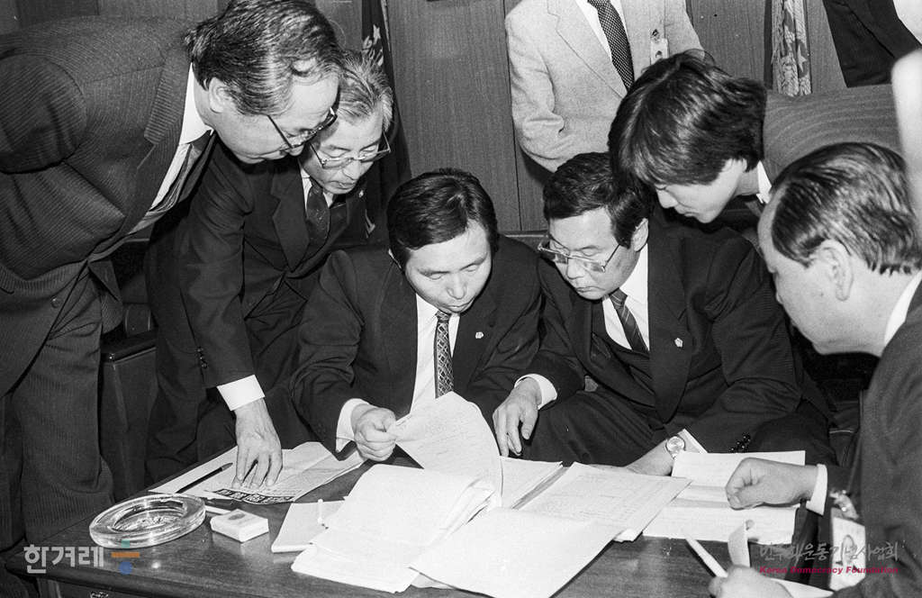 - 1988년 12월 3일 국회 광주특위는 2개 반을 편성해 국방부와 총무처의 대한 광주5.18 관련 문서들을 검증했다. 사진은 국방부에 나간 국회 광주특위 문서검증반이 서류검증을 하고 있다.