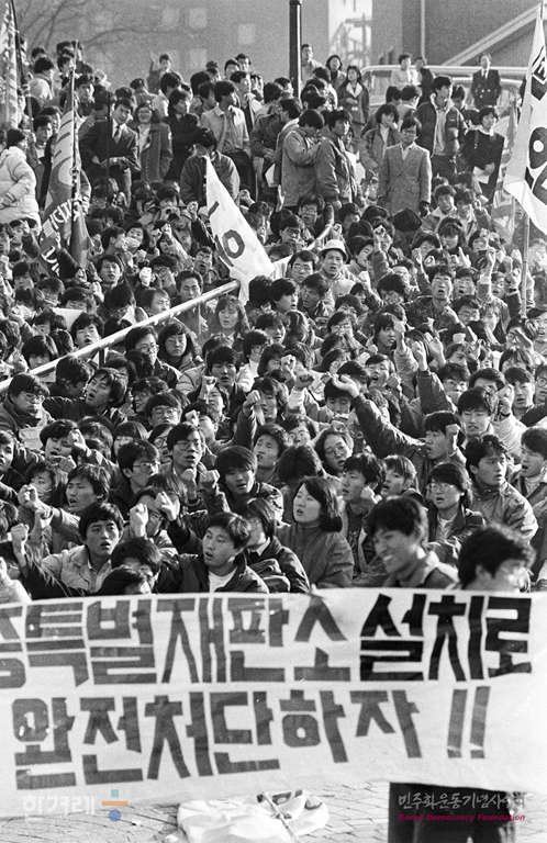 - 1988년 12월 3일 오후2시 서총련소속 학생 1천여 명은 서울 중구 명동성당입구에서 ’KAL기 폭파사건 진상규명대회‘을 열고 대한항공858가 폭파사건 진상조사를 위한 남북공동조사단 구성과 김현희에 대한 남북한 내외신기자 합동기자회견을 촉구하며 집회를 하고 있다.