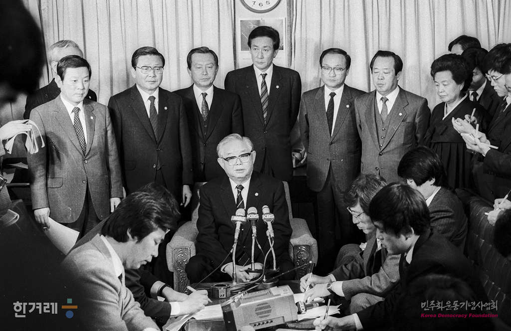 - 1988년 12월 8일 대폭적인 민정당 당직개편에 따라 윤길중 총재상임고문으로 임명된 전 민정당 대표의원이 기자들에게 당직개편에 대한 설명을 하고 있다.