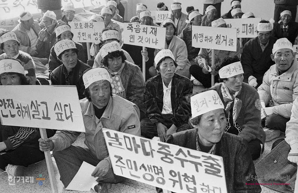 - 1988년 12월 12일 고리 월성 영광 원자력발전소 인근주민 4백여명이 서울 한국전력공사 본사 마당에 모여 핵발전소의 가동중단 등을 요구하며 농성을 벌이고 있다.