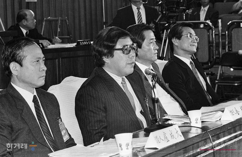 - 1988년 12월 13일 국회 문공위는 75년 동아 조선의 대량해직사태와 80년 언론인 강제해직과 관련한 언론청문회를 속개하면서 언론인 대학살의 진상과 경위를 묻었다. 이날 증인으로 참석한 왼쪽부터 노성대 당시 문화방송 보도부국장, 김근 당시 동아방송 기자, 김동선 당시 기자협회 편집실장, 이경일 당시 경향신문 외신부장이 증언하고 있다