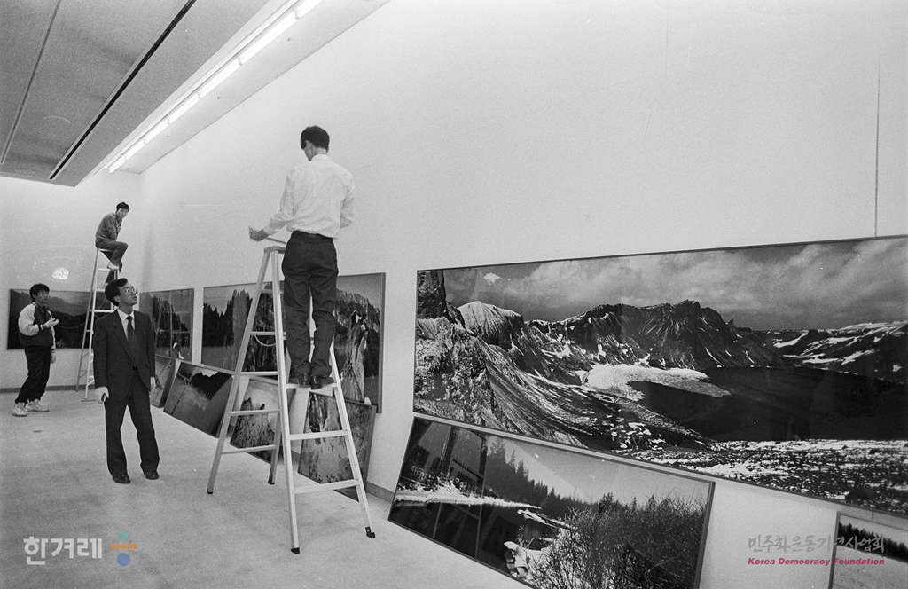 - 1988년 12월 15일 북녘의 수려한 산하가 담긴 구보타 히로지의 북한사진전이 하루앞두고 서울 강남 종합무역센터 현대백화점 8층 현대미술관에서 관계자들이 마무리 준비를 하고 있다.