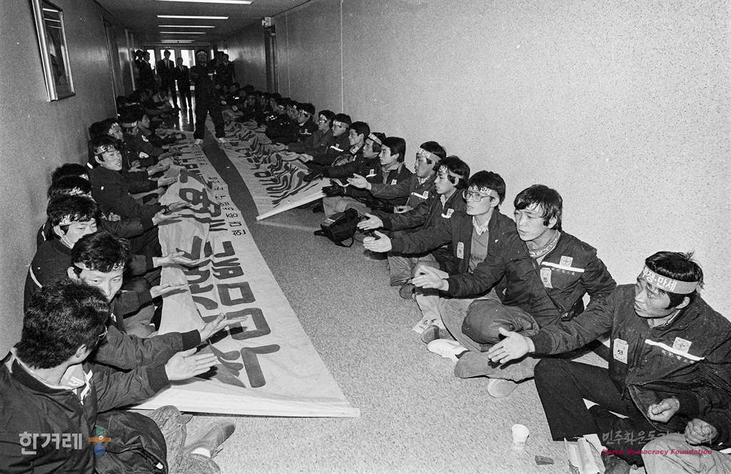 - 1988년 12월 15일 단체교섭이 깨져 지난 12일부터 파업에 드렁간 울산 현대중공업 노동자 90여명은 서울 종로구 계동 현대그룹 본사 11층 총무과 앞에서 정몽준 회장과의 면담을 요구하며 농성을 벌이고 있다.