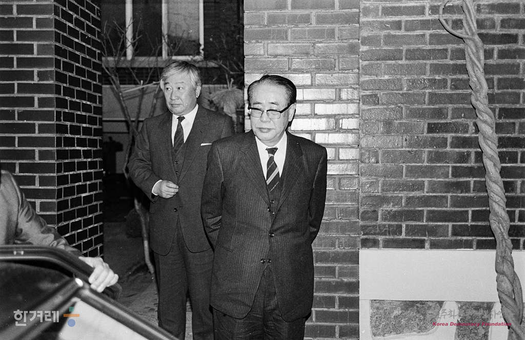 - 1988년 12월 16일 문동환 국회 광주특위 위원장이 최규하 전대통령의 서교동 자택을 방문해 오는 19일 광주특위 청문회에 출석해 증언할 것을 요구했으나 최씨는 적당한 시기가 아니라며 출석하지 않겠다는 사실을 확인한 뒤 집을 나서고 있다.