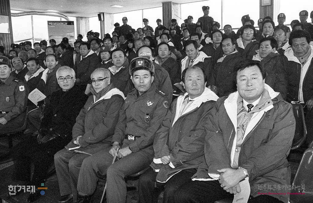- 1988년 12월 16일 김우중 대우그룹 회장을 비롯한 군부대 관계자들이 을지전망대 준공식을 하고 있다. 을지전망대는 1987년 12월 12일 전경련 회장단이 육군 제1862부대를 방문해 안보교육관의 건립을 제의했고, 이듬해인 1988년 5월 31일 1억 2,500만 원을 부대에 기탁함으로써 건립하여 이날 준공하게 되었다.