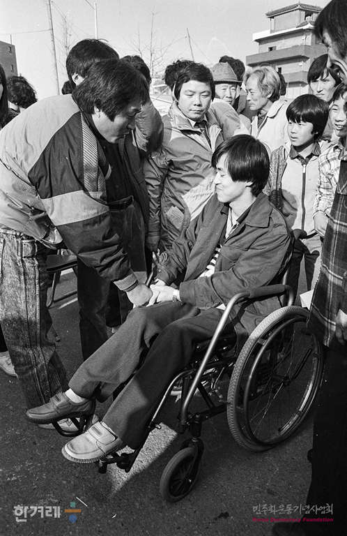 - 1988년 12월 17일 전민협 산하 광주, 5공투위와 구로구청 부정선거 항의투쟁동지회, 서총련, 국민운동본부 등 4개 단체 주최로 서울 구로구청옆 빈터에서 시민 학생등 3천 여명이 참석한 가운데 구로항쟁계승 및 광주학살 12.16 부정선거 주범 전, 노일당 규탄시민대회가 열려 당시 부상을 당한 양원태시가 휠체어를 타고 참석해 인사를 하고 있다.