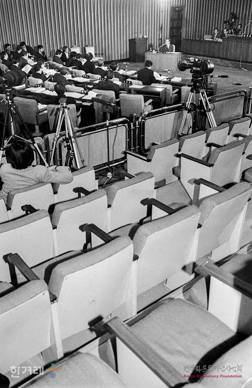 - 1988년 12월 19일 관심을 집중시킨 최규하 전 대통령의 증언이 이뤄지지 않아 김이 빠진 때문에 광주항쟁의 진상규명을 위한 3차 청문회 방청석이 텅 비어 있다.