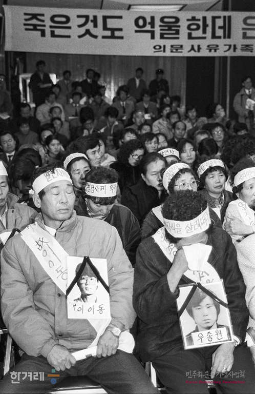 - 1988년 12월 19일 오후 2시 반고문 반폭력 인간선언대회가 서울 종로구 연지동 기독교회관 2층 대강당에서 김대중, 권인숙, 김근태씨등 고문 및 폭력 피해자들과 가족 시민 학생 등 3백여명이 참석한 가운데 열리고 있다.