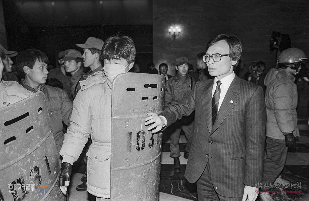 - 1988년 12월 20일 오전 11시 20분 광주특위 청문회가 진행중인 서울 여의도 국회의사당에 5.18 광주민중항쟁 관련 4개 단체 소속 회원 등 1백20여명이 광주학살의 철처한 진상규명을 요구하며 농성을 벌이고 있다.