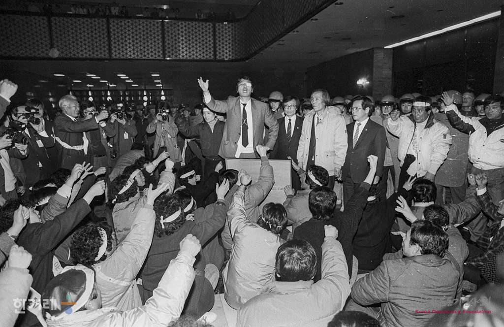- 1988년 12월 20일 오전 11시 20분 광주특위 청문회가 진행중인 서울 여의도 국회의사당에 5.18 광주민중항쟁 관련 4개 단체 소속 회원 등 1백20여명이 광주학살의 철처한 진상규명을 요구하며 농성을 벌이고 있다.