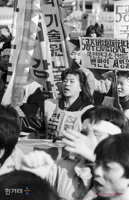 - 1988년 12월 20일 연구자율성 확보와 민주적운영 등을 요구하며 일주일째 파업을 하고 있는 산업연구원, 한국개발연구원, 한국과학기술원, 정신문화연구원 등 연구 전문 기술노조협의회 소속 노조원 8백여명은 서울 동대문구 청량리동 한국과학기술원에 모여 정부와 연구기관쪽에 조속한 대책마련을 촉구하는 집회를 하고 있다.