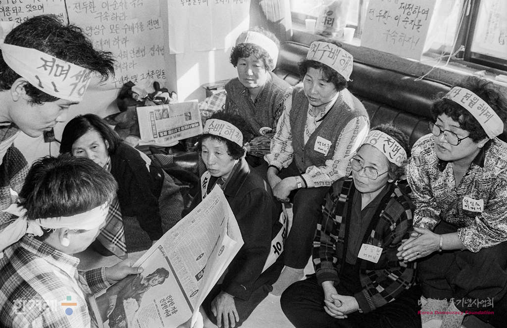 - 1988년 12월 20일 정부의 시국사범 194명과 공안사범 64명, 계엄군법회의 수형자 23명 등 시국 공안 사범 281명의 석방과 1622명에 대한 사면 복권조치가 단행되기 하루 앞서 서울 중구 삼각동 광주학살관련자 처벌 및 5공척결 투쟁위원회 사무실에서 수배자 가족들이 수사기관원의 추적을 받고 있는 내부수배자 270여명에 대해서도 추적 미행 등이 즉각 중지를 요구하며 농성을 벌이고 있다,