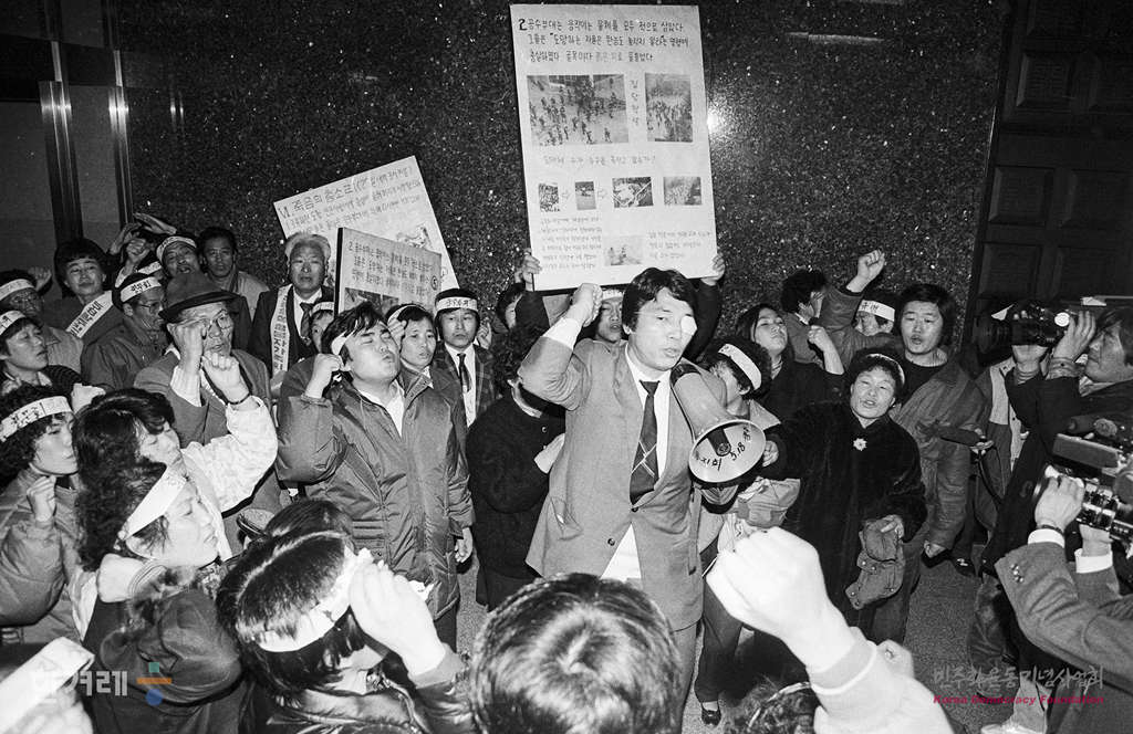 - 1988년 12월 20일 오전 11시 20분 광주특위 청문회가 진행중인 서울 여의도 국회의사당에 5.18 광주민중항쟁 관련 4개 단체 소속 회원 등 1백20여명이 광주학살의 철처한 진상규명을 요구하며 농성을 벌이고 있다.