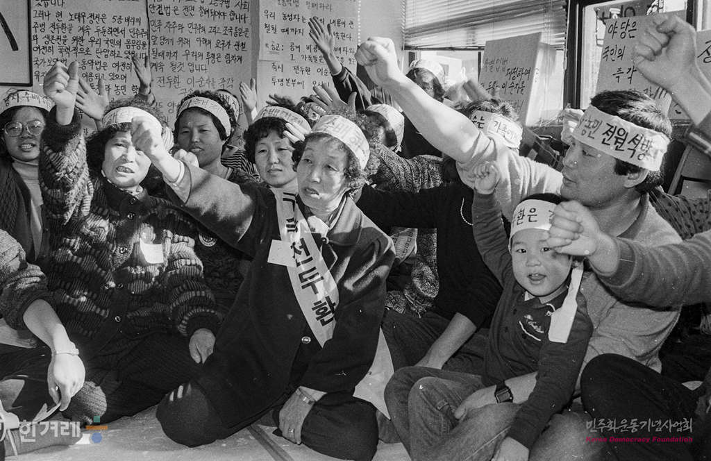 - 1988년 12월 20일 정부의 시국사범 194명과 공안사범 64명, 계엄군법회의 수형자 23명 등 시국 공안 사범 281명의 석방과 1622명에 대한 사면 복권조치가 단행되기 하루 앞서 서울 중구 삼각동 광주학살관련자 처벌 및 5공척결 투쟁위원회 사무실에서 수배자 가족들이 수사기관원의 추적을 받고 있는 내부수배자 270여명에 대해서도 추적 미행 등이 즉각 중지를 요구하며 농성을 벌이고 있다,