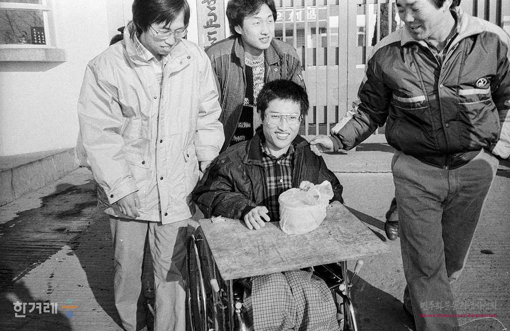 - 1988년 12월 21일 오전 10시 정부의 12.20조치에 따라 복역중이던 시국 공안사건 관련자 1백 28명이 전국 교도소에서 풀려난 가운데 지난 87년 2월 이른바 제헌의회그룹사건으로 구속돼 징역 7년을 선고받고 춘천교도소에서 복역중이던 최민씨가 어미니 박금순씨 등 가족과 친지 동료 10여명의 환영을 받으며 교도소 문을 나서고 있다.