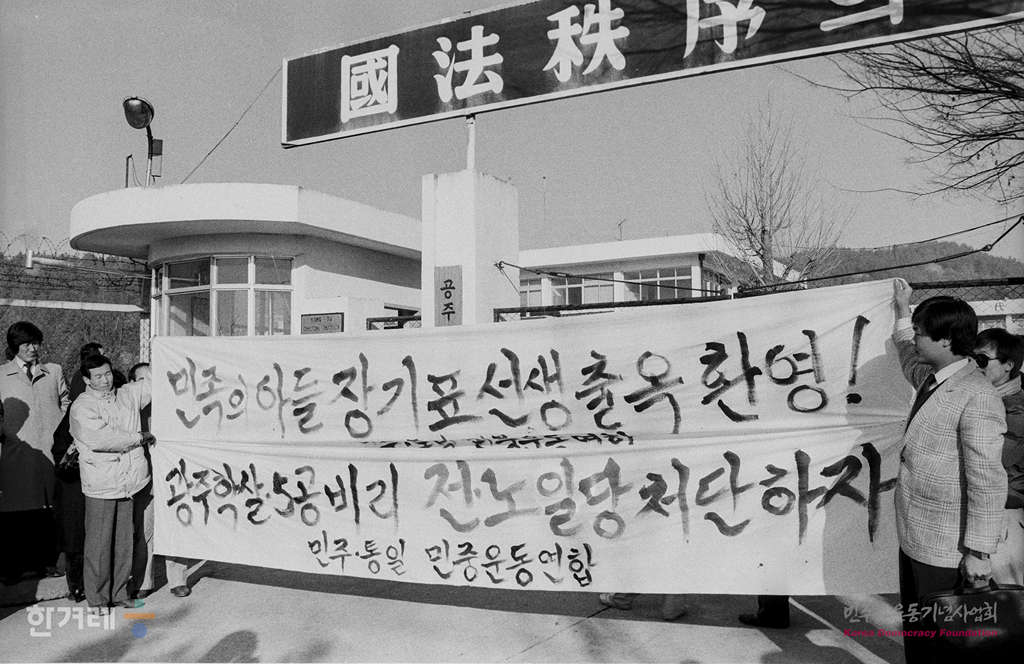- 1988년 12월 21일 오전 10시 정부의 12.20조치에 따라 복역중이던 시국 공안사건 관련자 1백 28명이 전국 교도소에서 풀려난 가운데 5.3인천사태 관련으로 공주교도소에서 복역중이던 장기표씨가 부인 조무하씨를 등 가족과 계훈제 이부영 김근태씨 등 전국민족민주운동협의회추진위원회 인사들과 2년 7개월 만에 재회를 하고 있다.