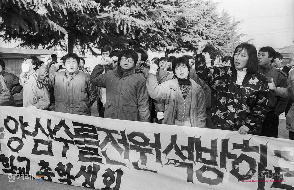- 1988년 12월 21일 오전 10시 정부의 12.20조치에 따라 복역중이던 시국 공안사건 관련자 1백 28명이 전국 교도소에서 풀려난 가운데 82년 3월 부산 미문화원 방화사건으로 반미운동의 불길을 당긴 김현장씨가 복역중인 대구교도소앞에서 환영나온 시민 학생들이 양심수 전원석방을 요구하며 시위를 벌이고 있다.