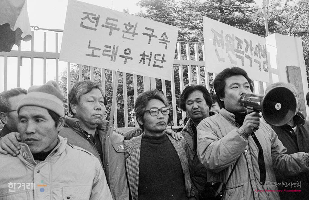 - 1988년 12월 21일 오전 10시 정부의 12.20조치에 따라 복역중이던 시국 공안사건 관련자 1백 28명이 전국 교도소에서 풀려난 가운데 79년 10월 남민전(남조선민족해방전선)사건과 관련 국가보안법 위반과 강도혐의로 구속되어 15년형을 선고받고 전주교도서에서 복역중이던 김남주 시인이 어머니 문일임시와 가족 친지들의 마중을 받으며 전주교도소 정문을 나서고 있다.