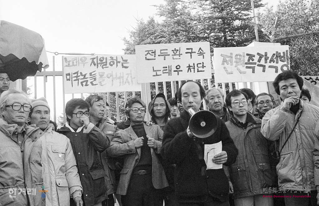 - 1988년 12월 21일 오전 10시 정부의 12.20조치에 따라 복역중이던 시국 공안사건 관련자 1백 28명이 전국 교도소에서 풀려난 가운데 79년 10월 남민전(남조선민족해방전선)사건과 관련 국가보안법 위반과 강도혐의로 구속되어 15년형을 선고받고 전주교도서에서 복역중이던 김남주 시인이 어머니 문일임시와 가족 친지들의 마중을 받으며 전주교도소 정문을 나서고 있다.